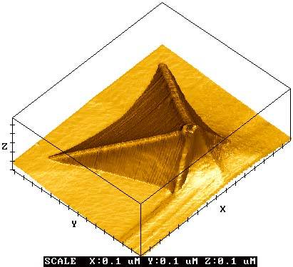 ProbeGold coated silicon nitride cantilever with curve radius 20nm.