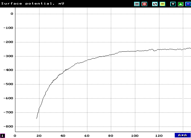 [Image] By the study of the dependence of the surface potential versus the ionic force it is possible to investigate the surface charge of the surfactantes. That is the dependence of surface potential versus surface concentration for the Langmuir layer of C14F29COOH.