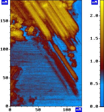 Измерено В.Быковым, Научно Исследовательский Институт Физических Проблем & НТ-МДТ, Москва, Россия.