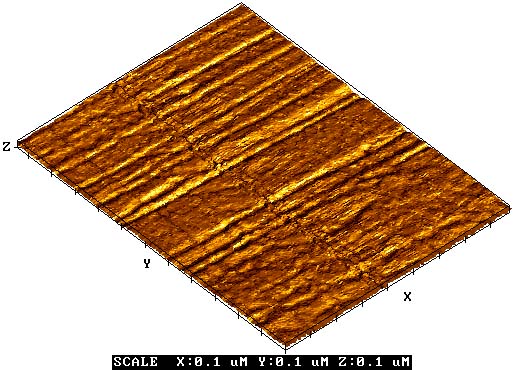 Измерено М.Еремченко, Научно Исследовательский Институт Физических Проблем & НТ-МДТ, Москва, Россия. V.A.Fedirko, V.A.Bykov, M.D.Eremtchenko, V.I.Shashkin and V.M.Daniltzev. Characterization of GaAs/GaAlAs MOCVD Superlatice by STM/AFM Technique. Russian Academy of Siences. Abstracts of Invited Lectures and Contributed Papers, St Petersburg, Russia, 24-28 June 1996, pp.. 381-384. | ||||||||||