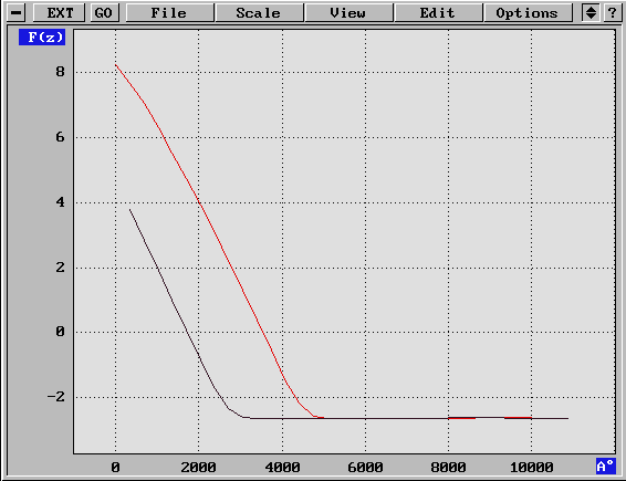 Изменение силы взаимодействия кантилевера с поверхностью образца от растояния между ними для GaAs при остаточном давлении в аналитической камере 10-10торр