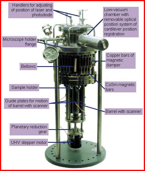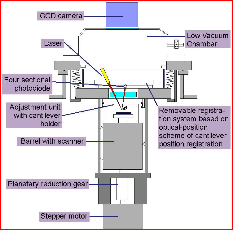 • Low-vacuum chamber with removable optical position system of cantilever position registration.